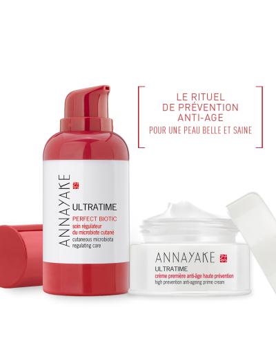 Le matin, appliquer Perfect Biotic sur une peau parfaitement nettoyée, puis la Crème première anti-âge haute prévention.